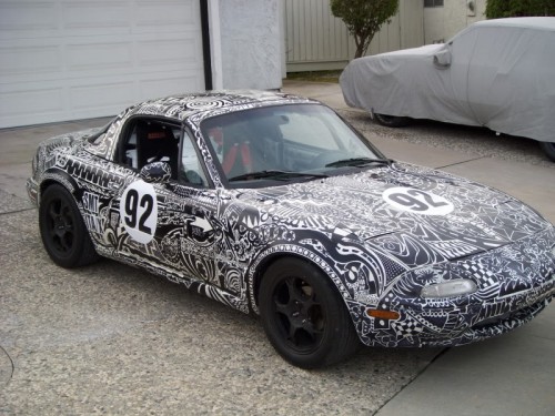 This Miata’s unique paint job is actually the result of 22 days and $100 dollars’ worth of Sharpies. That’s pretty amazing. My arm aches just thinking about it.
